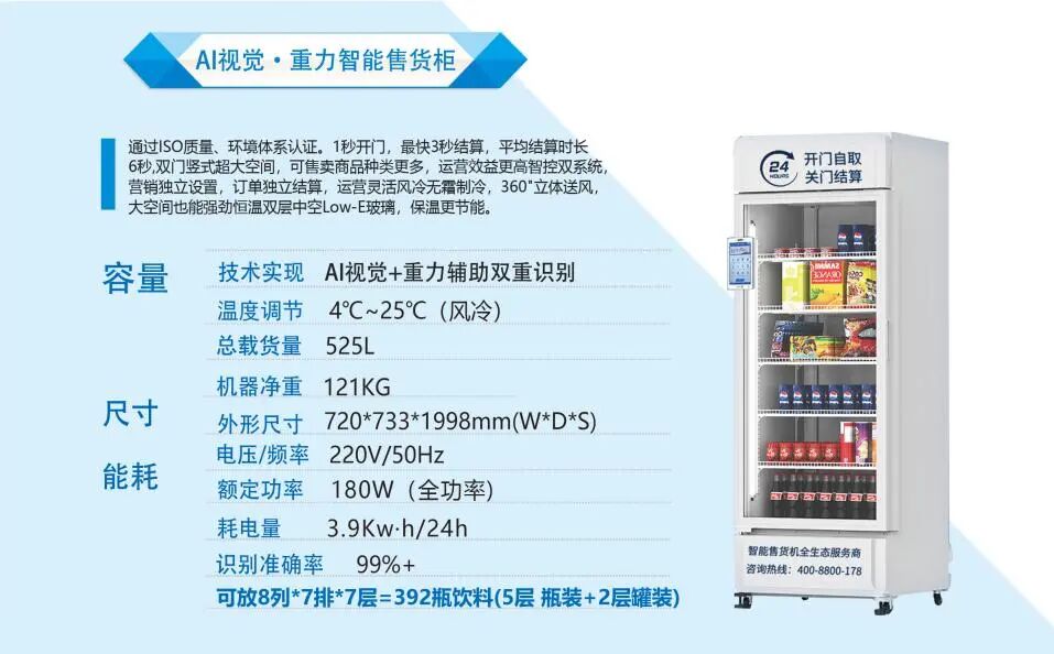单门自取柜,通过ISO质量,环境体系认证。其具有高校节能的制冷、锁冷、隔热保温功能,可24小时连续运转,扫码开门,随心拿取,实现真正自助售卖。还有节能环保设计和多重摄像头防盗设计,使用更加放心。微信或支付宝扫码开门,即可拿取商品,关门后自动结算。